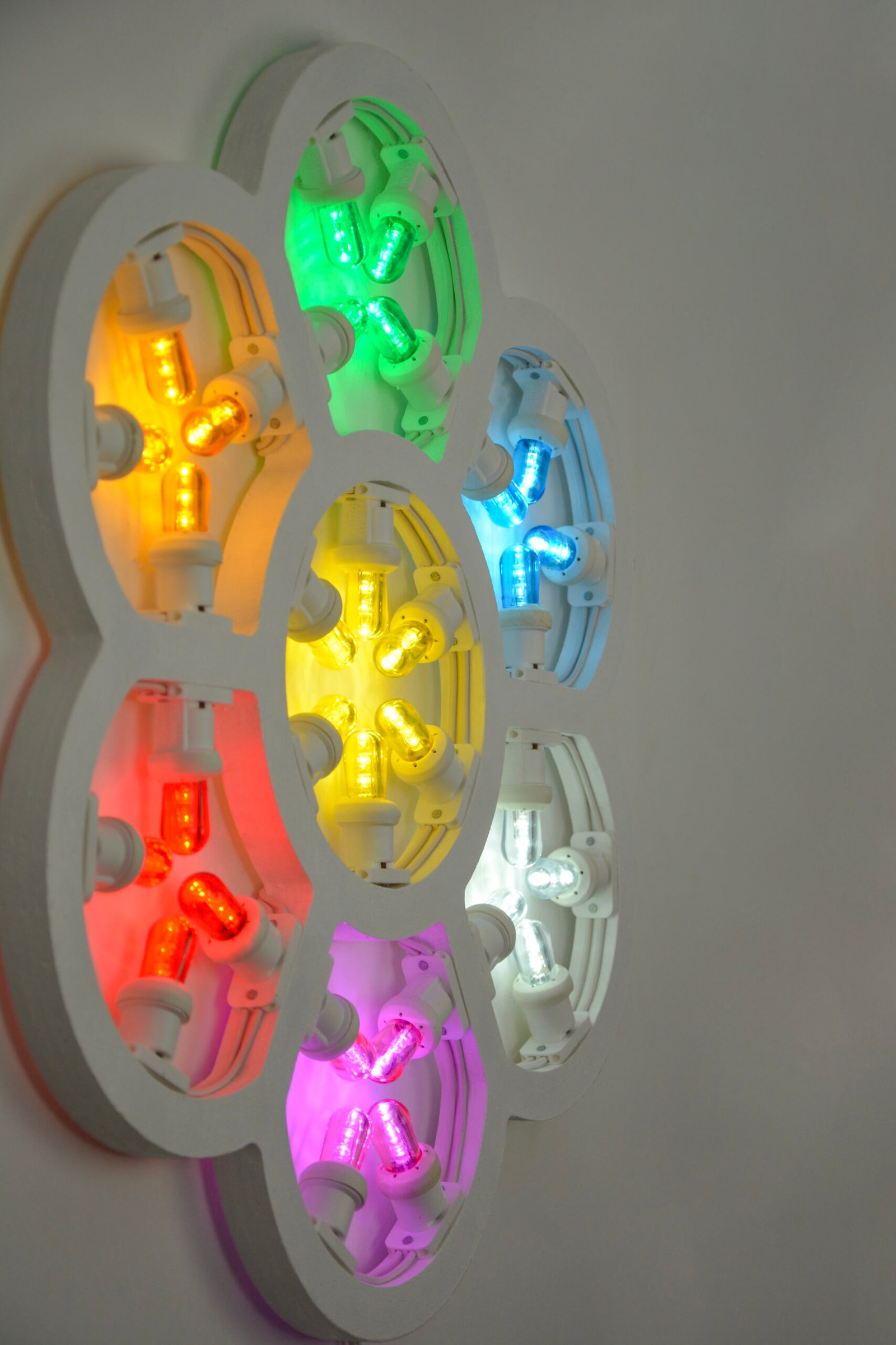 Rosone artigianale in legno Caleidoscopio, ispirato ai giochi di luce e forme dei classici caleidoscopi. Il design intagliato crea effetti luminosi dinamici e affascinanti, perfetto per ambienti originali e creativi.