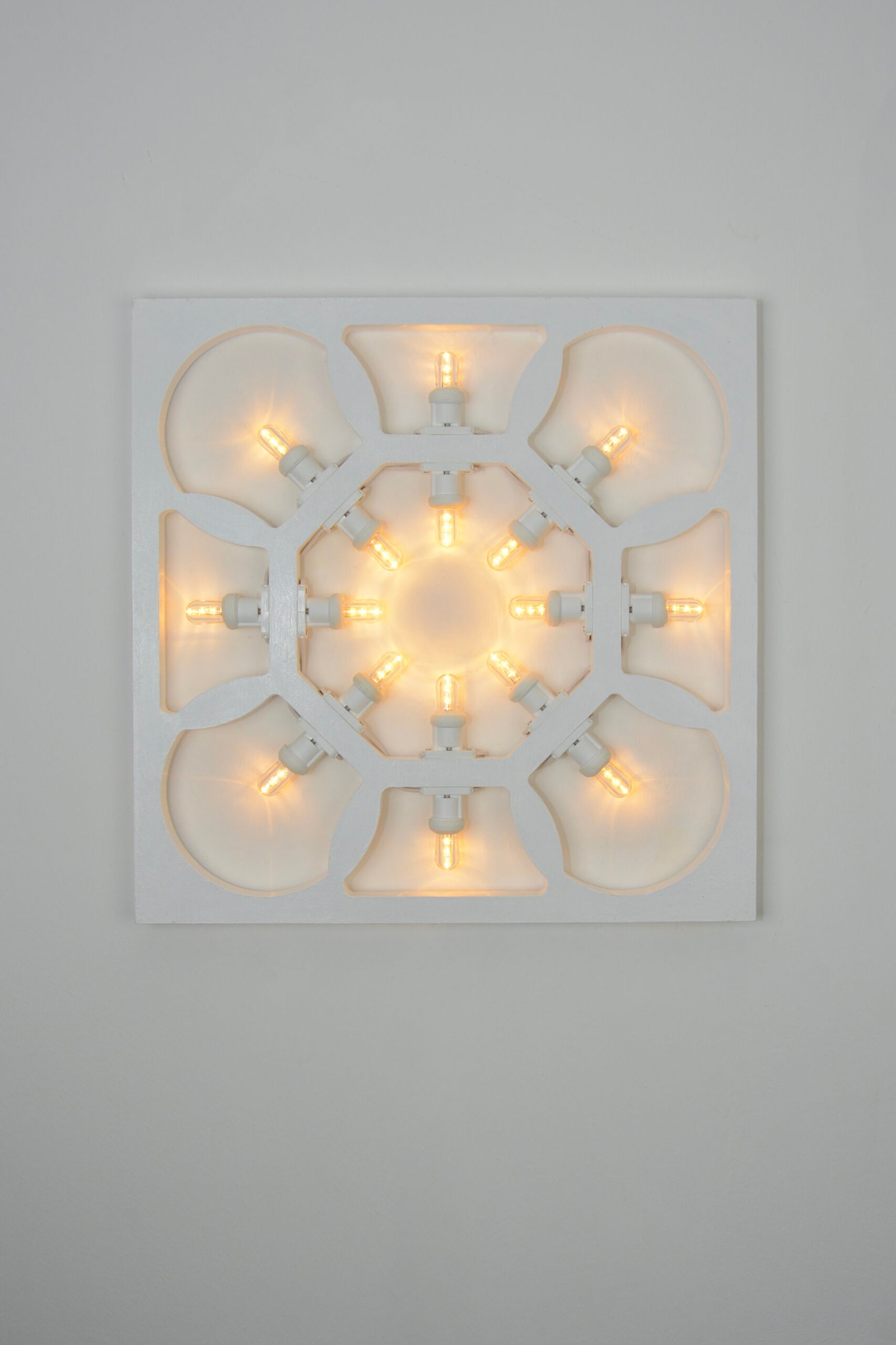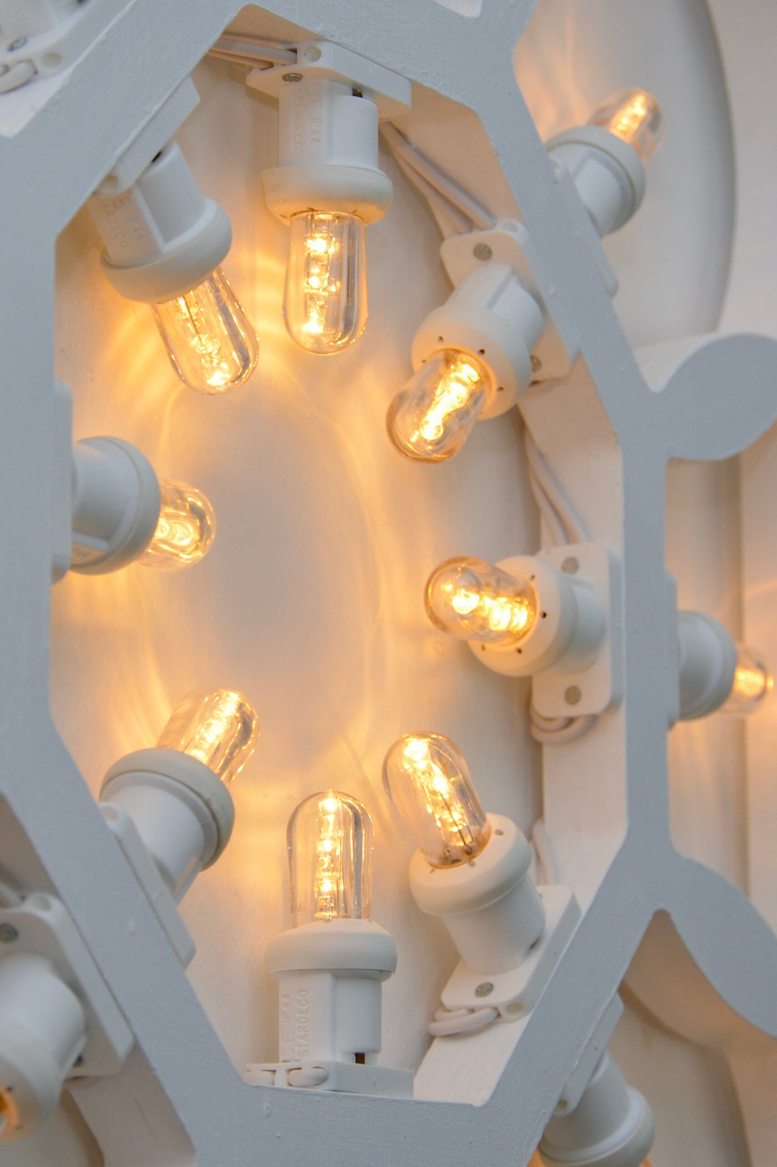 Rosone artigianale in legno Elegancia, dal design raffinato e dettagli intagliati con precisione. La luce che filtra crea un’atmosfera sofisticata, ideale per ambienti eleganti e ricercati.
